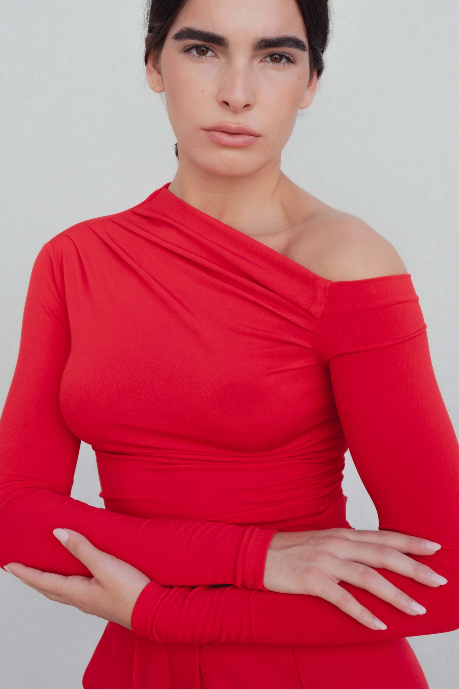 CAMISETA ROJA ASIMETRICA PLIEGUES