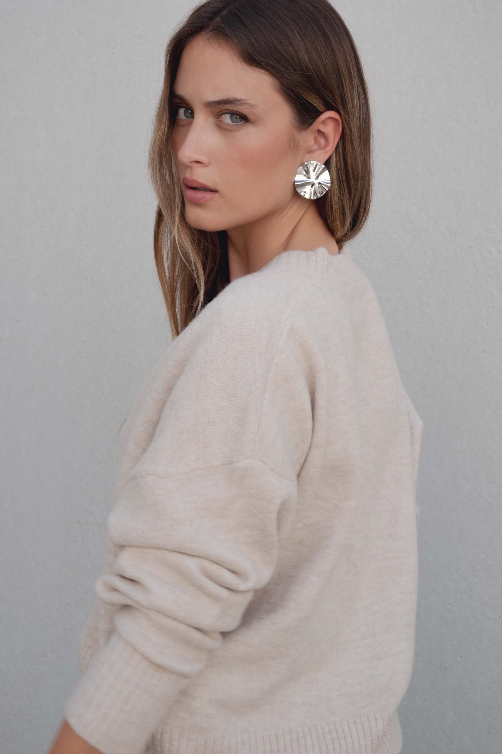Jersey oversize con cuello pico y manga larga. Acabados en rib.
